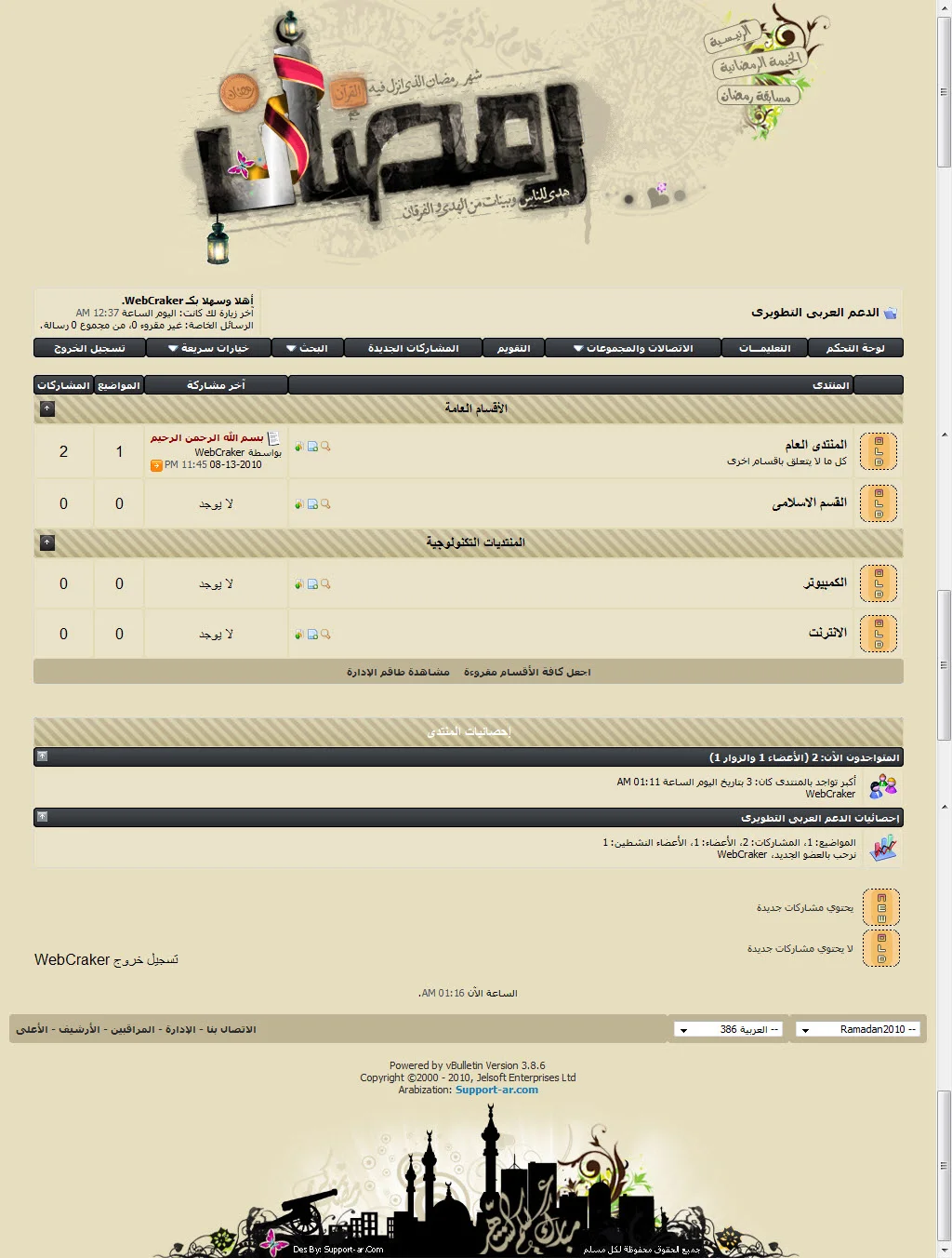 https://support-ar.net/forums/attach...1&d=1281840295 تركيب الاستايل 1 - قم برفع الملف المضغوط وفك ضغطه داخل مجلد المنتدى الأساسى بأعتبار ان مجلد المنتدى الأساسى هو vb او قم برفع المجلدين imgaes و ramadan-style إلى مجلد المنتدى الأساسى vb 2 - قم برفع الاستايل من لوحة التحكم والمسمى بـ vbulletin-style.xml التحميل من المرفقات |